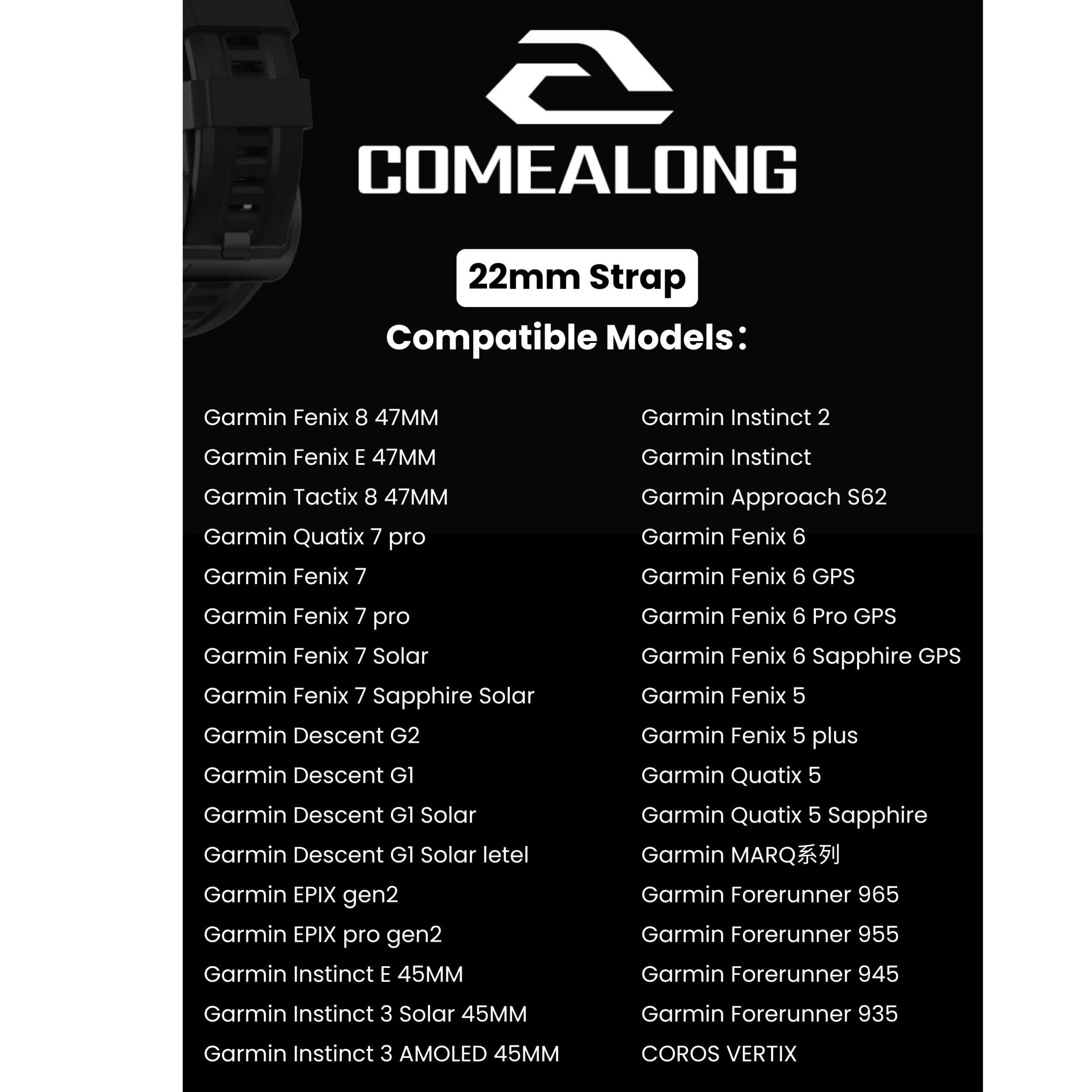 Introducing the 22mm Two-Tone Volt range of Comealong Products’ replacement quick release watch straps compatible with Garmin watches. The bands are of high quality, comfortable, durable and are designed to withstand the conditions of sports and adventure.