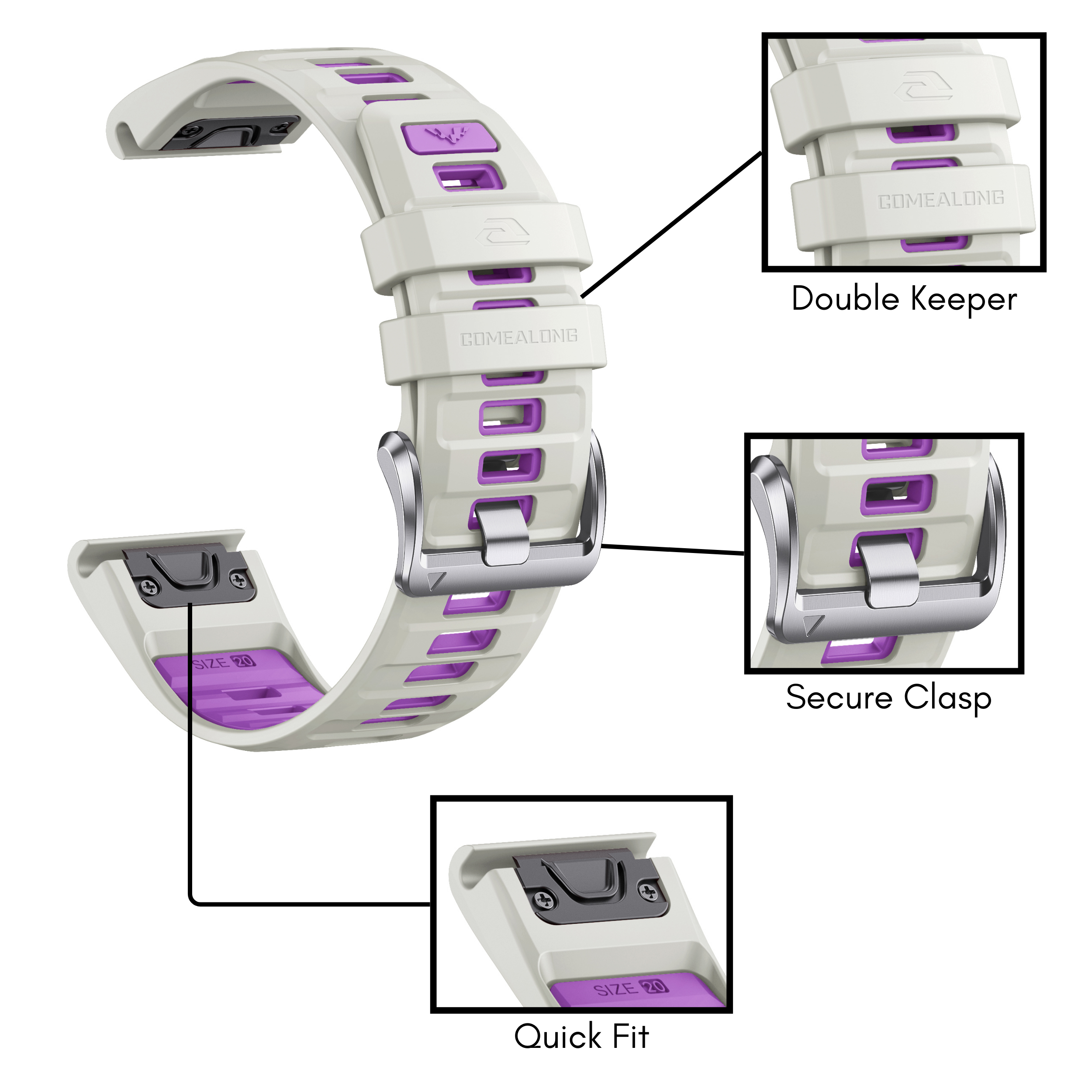 Introducing the 20mm Silicon Volt Multi-Color Watch Strap range of Comealong Products’ replacement quick fit watch bands for Garmin watches. The bands are of high quality, trendy, comfortable, durable and are designed to withstand the conditions of sports and adventure.